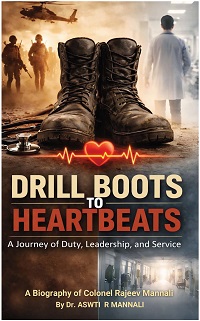 Drill Boots to Heartbeats: A Journey of Duty, Leadership and Service is a compelling biography of Colonel Rajeev Mannali, written by his daughter, Dr. Aswti R Mannali. Born in rural Kerala in 1955, Colonel Mannali’s extraordinary life spans over three decades in the Indian Army — from Sainik School and the National Defence Academy to commanding roles during the Sri Lanka peacekeeping operations and the Kargil conflict — followed by a remarkable second career in healthcare administration.